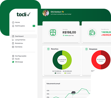 Sim! Na Tocli, você visualiza entradas, saídas, fluxo de caixa e muito mais em um painel simples e organizado.